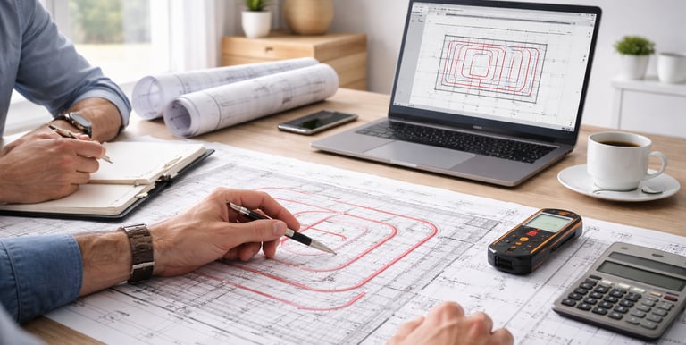 Planung, Verlegung und Systemaufbau von Fussbodenheizungen - präzise, effizient und zuverlässig umgesetzt.
