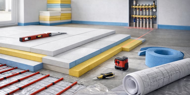 Nach einer persönlichen Beratung analysieren wir Ihr Projekt und planen den optimalen Systemaufbau. Anschliessend erfolgt die Vorbereitung des Untergrunds, die Installation der Dämmung und die präzise Verlegung der Fussbodenheizung sowie die Erstellung des Unterlagsbodens.