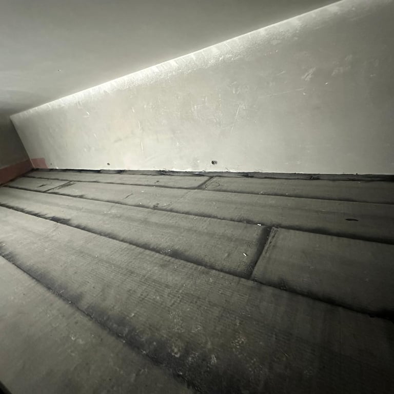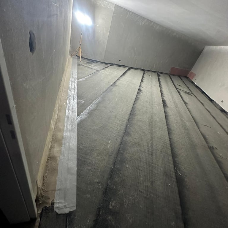 Die Feuchtigkeitssperre schützt den Bodenaufbau zuverlässig vor aufsteigender Feuchtigkeit aus dem Untergrund. Sie bildet eine wichtige Trenn- und Schutzschicht zwischen Rohboden, Dämmung und weiteren Aufbaukomponenten. Durch die fachgerechte Verlegung wird die Bausubstanz geschützt und die langfristige Funktion des gesamten Bodensystems sichergestellt.